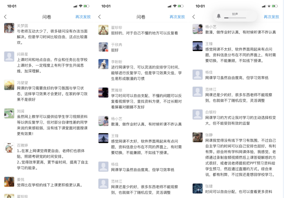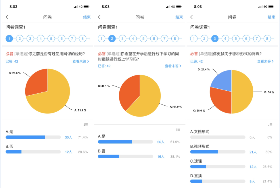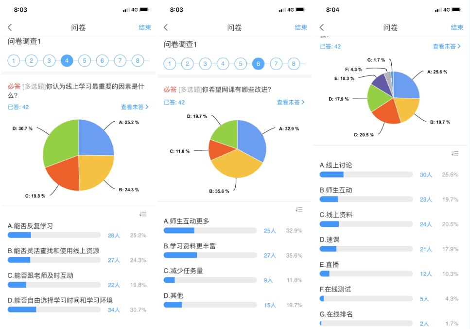雖然前期授課任務(wù)都順利完成了,但是在進行網(wǎng)上授課一段時間后,為了更好地了解學(xué)生們的網(wǎng)上學(xué)習(xí)效果、學(xué)習(xí)感受,鄒維一老師還是進行了一系列在線問卷調(diào)查,以掌握授課情況,不斷及時調(diào)整授課方式。