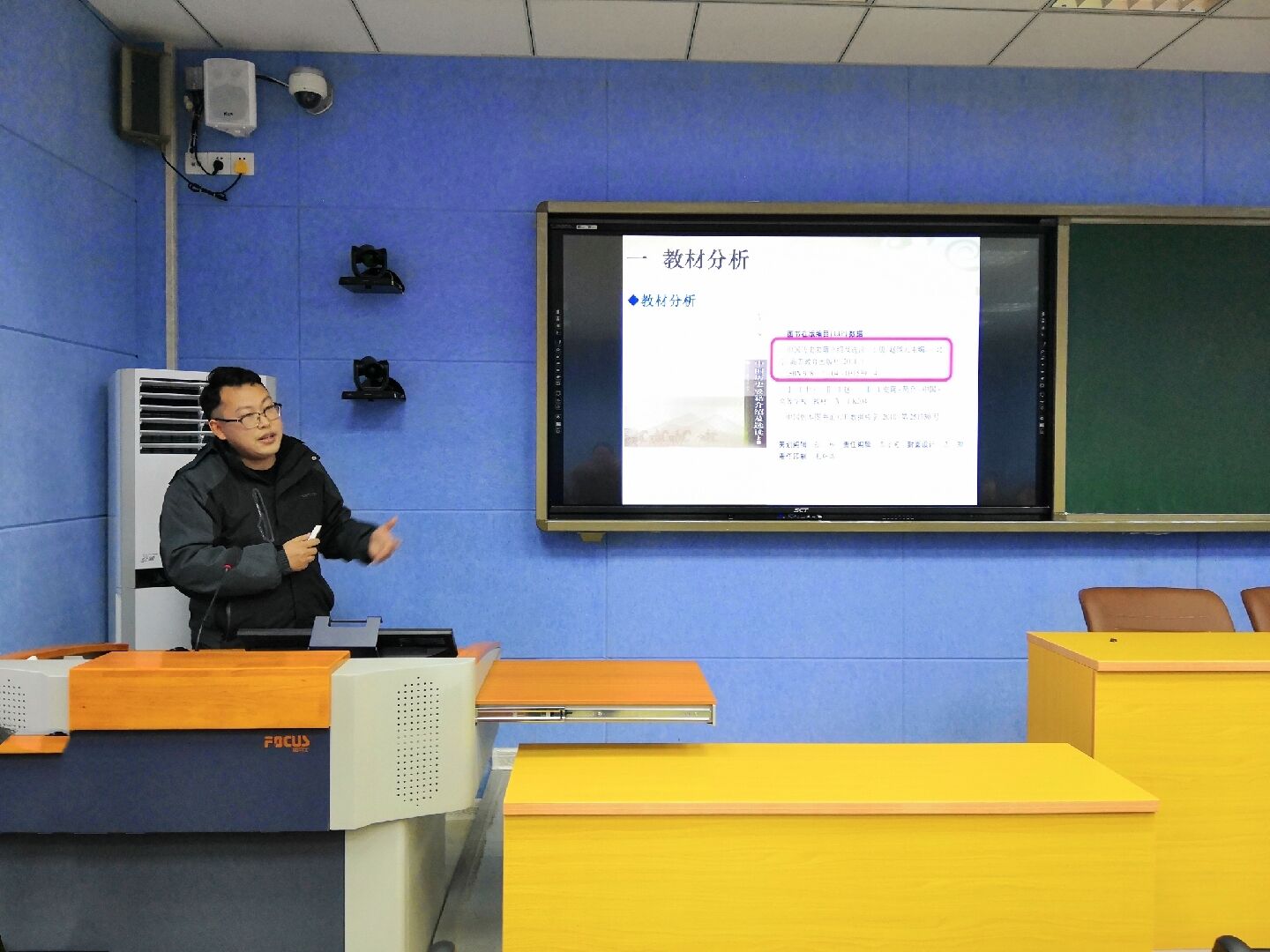 經(jīng)過為期兩周的隨堂聽評課和教研室推薦,文化產(chǎn)業(yè)管理教研室李國東老師、中國近現(xiàn)代史教研室張望老師、中國古代史教研室王娟老師、世界史教研室的呂振綱老師、人文教育教研室姚磊老師參加了本次說課比賽。他們熟練運用多媒體,采用理論剖析、案例解說等方式,對管理學、冷戰(zhàn)時期的國際關系、學術論文材料的使用、中華人民共和國的誕生等課堂設計進行了精彩講解。