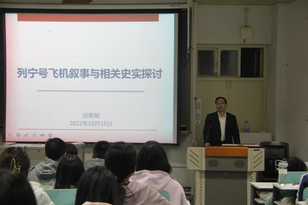 10月15日晚,我院人文視野學(xué)術(shù)報(bào)告如期在人文樓609教室開講,田青剛教授應(yīng)邀作了題為《“列寧號(hào)”飛機(jī)敘事與相關(guān)史實(shí)探討》的學(xué)術(shù)報(bào)告,我院高年級(jí)歷史學(xué)本科生和碩士研究生聆聽了此次報(bào)告,此次報(bào)告由副院長(zhǎng)孫煒主持。