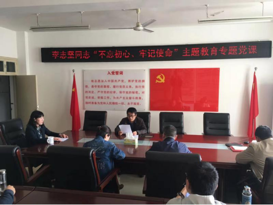 首先是黨支部書記李志堅(jiān)同志為本支部全體黨員作了題為“踐行大別山精神,堅(jiān)定理想信念的專題黨課。