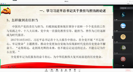 教工一支部書記孫煒同志面向歷史文化學(xué)院全體黨員講述了了以《共產(chǎn)黨員的責(zé)任與擔(dān)當(dāng)——疫情期間的一點(diǎn)思考》為題的黨課;教工二支部、教工三支部認(rèn)真學(xué)習(xí)了《習(xí)近平總書記關(guān)于民法典的重要講話》。