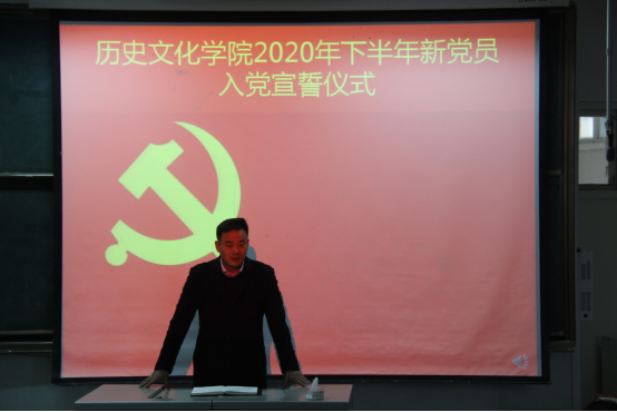 12月8日下午,我院在人文樓609教室舉行了2020年下半年預(yù)備黨員宣誓儀式,院黨委書記李軍輝、副書記劉喜元,支部書記付亞男、鄧皓,2020年下半年轉(zhuǎn)正黨員、新發(fā)展黨員及部分入黨積極分子參加。儀式由劉喜元主持。