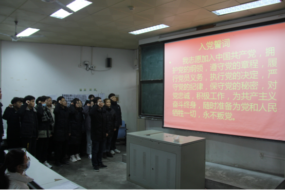 會議伊始,全體起立唱《國際歌》。接著,由付亞男宣讀參加宣誓的轉(zhuǎn)正黨員與預(yù)備黨員名單,參加宣誓的預(yù)備黨員在領(lǐng)誓人鄧皓的帶領(lǐng)下,面向黨旗莊嚴宣誓。轉(zhuǎn)正黨員代表韓廣州、預(yù)備黨員代表王晨晨、入黨積極分子代表龔麗文先后發(fā)言。