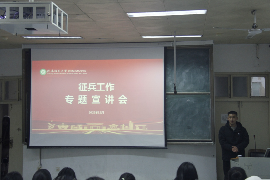 為積極響應(yīng)國家征兵號(hào)召,激發(fā)青年學(xué)子參軍報(bào)國熱情,助力國防建設(shè),12月12日,我院在人文樓510教室成功召開武裝工作專題宣講會(huì)。本次宣講會(huì)面向2025級(jí)和2023級(jí)同學(xué),由學(xué)院武裝干事孟凡聰擔(dān)任主講人。