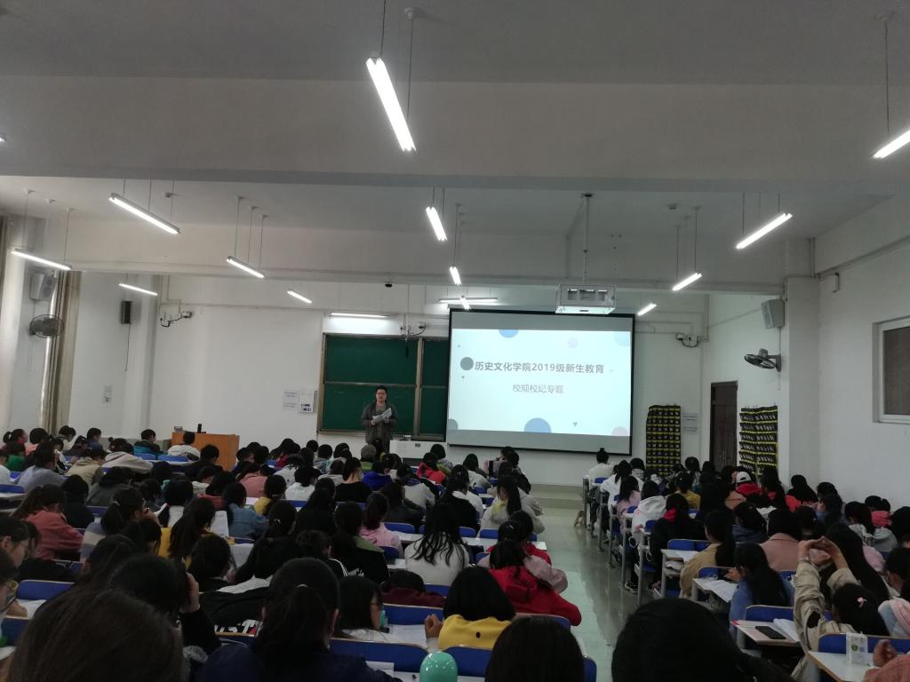 為了加強(qiáng)大一新生的校規(guī)校紀(jì)的教育,樹(shù)立學(xué)生的紀(jì)律意識(shí)和制度意識(shí),11月15日上午,我院在社科樓212教師進(jìn)行“新生入學(xué)教育——校規(guī)校紀(jì)專題”宣講會(huì)。專職輔導(dǎo)員王道歆老師主講,全體大一新生參與了此次活動(dòng)。