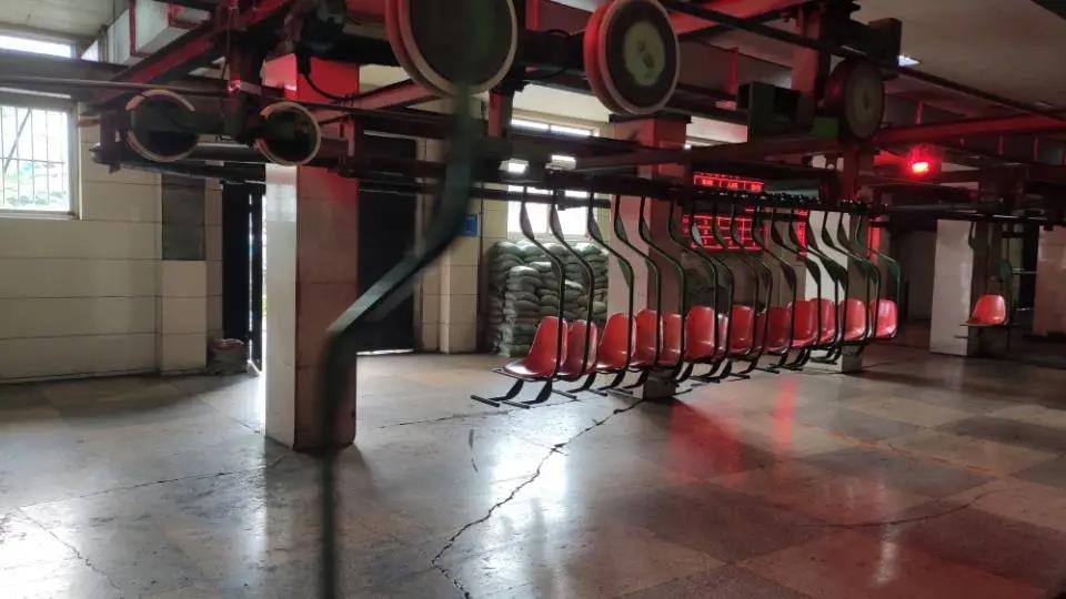 礦區(qū)最高的建筑物是所有礦井采運(yùn)出的煤巖聚集點,在此進(jìn)行煤和巖石的分離。分離出的煤可以直接由下方軌道火車運(yùn)送,分離出的巖石則由空中傳送到運(yùn)送。空中傳送帶替代了以往地面軌道運(yùn)輸,減少了人力和污染。分離出的的巖石運(yùn)送到其他工廠進(jìn)行二次加工,可以生產(chǎn)磚頭。