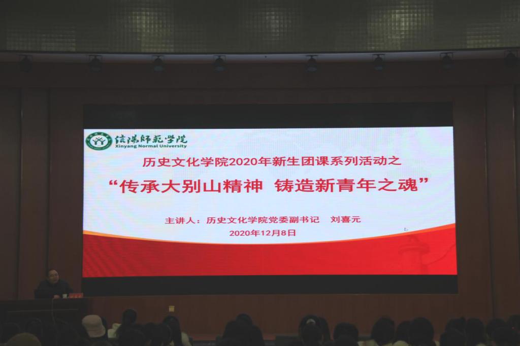 12月8日晚,我院于逸夫樓報告廳舉行2020級新生團校系列活動,院黨委副書記劉喜元作主題為“傳承大別山精神 鑄造新青年之魂”的講座。