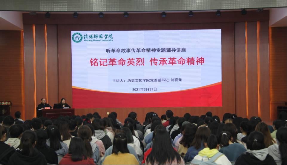 3月31日,由校團委主辦、我院承辦的2021年“聽革命故事 傳革命精神”專題輔導(dǎo)講座在逸夫樓報告廳舉行。我院黨委副書記劉喜元以“銘記革命英烈 傳承革命精神”為主題,為現(xiàn)場300余名青年學(xué)生作輔導(dǎo)講座。講座由校團委組織部部長雷玲主持。