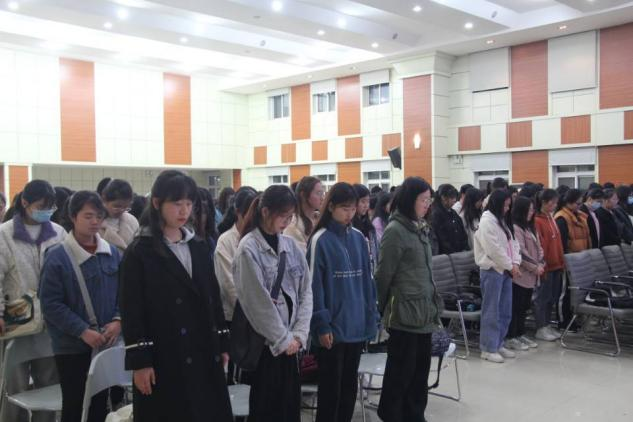 講座結(jié)束后,輔導(dǎo)員鄧皓帶領(lǐng)在場全體學(xué)生一起進(jìn)行緬懷革命英烈的默哀儀式,向為祖國獻(xiàn)出生命的英烈表達(dá)深切的哀悼。