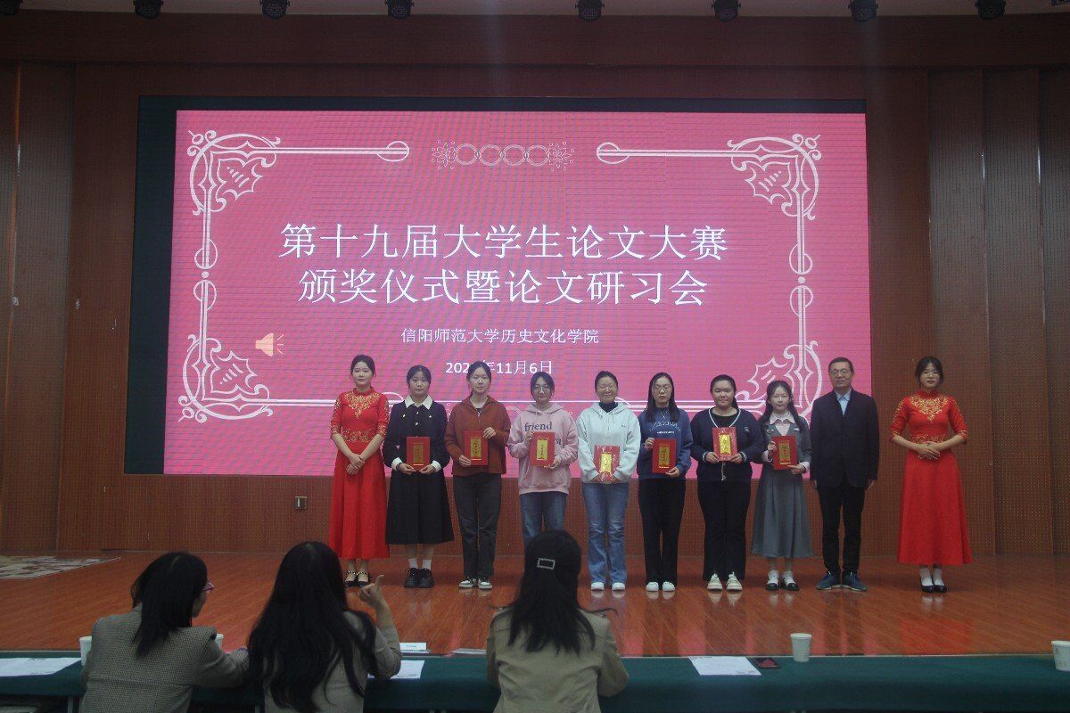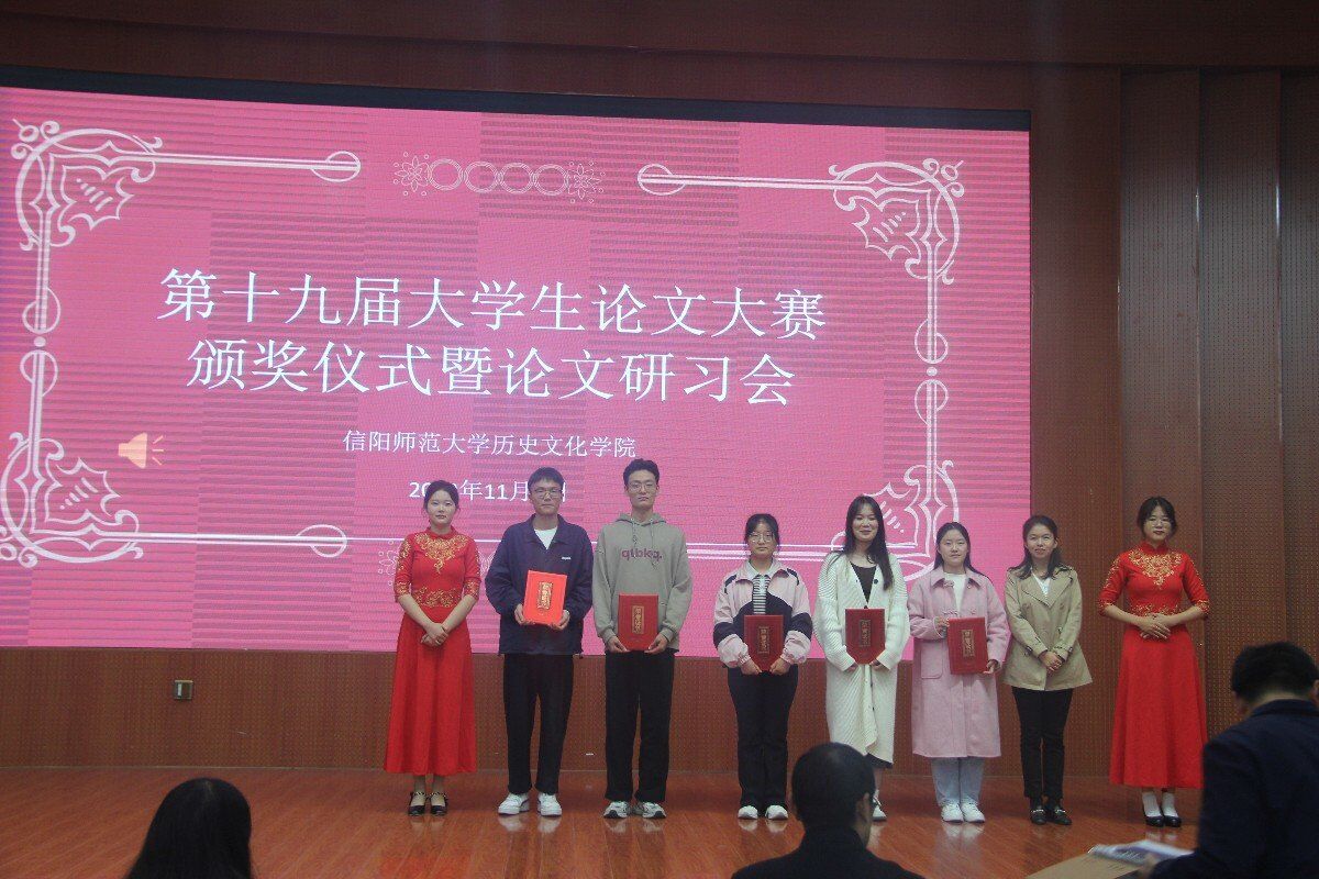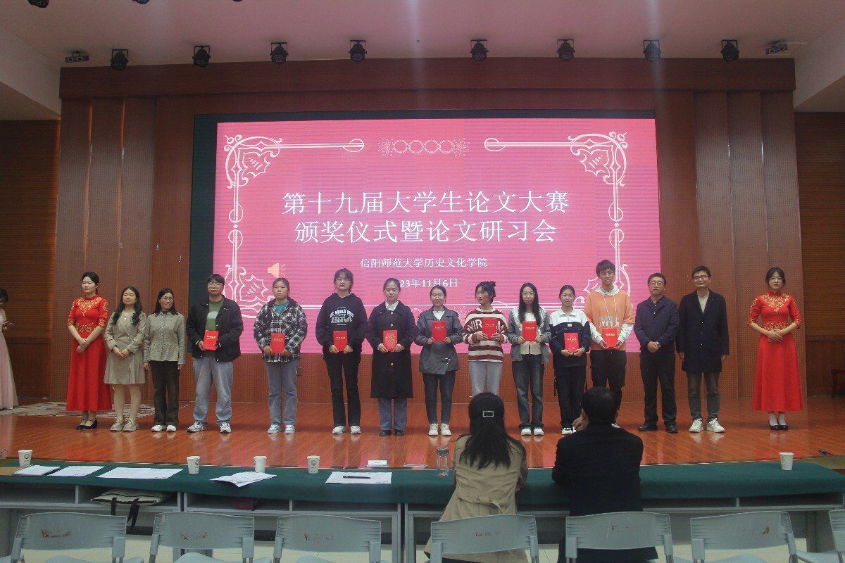 活動(dòng)伊始,主持人介紹了研習(xí)會(huì)是旨在提高學(xué)生的科研能力,活躍學(xué)術(shù)思想,提高同學(xué)們的論文寫作能力和學(xué)術(shù)創(chuàng)新參與率。李志堅(jiān)宣讀本次研習(xí)會(huì)論文獲獎(jiǎng)名單,由各位領(lǐng)導(dǎo)嘉賓為獲獎(jiǎng)同學(xué)頒獎(jiǎng)。欣賞完民族舞《愛(ài)我中華》表演后,進(jìn)入論文匯報(bào)階段。2020級(jí)歷史學(xué)3班韓爽、2021級(jí)文化產(chǎn)業(yè)管理班任思瑩、2021級(jí)歷史學(xué)2班田艷瑞、2021級(jí)歷史學(xué)1班王江濤和2020級(jí)歷史學(xué)1班王雨航分別闡述了自己的論文《民國(guó)時(shí)期河南光山縣公路交通與經(jīng)濟(jì)發(fā)展》《互聯(lián)網(wǎng)背景下信陽(yáng)毛尖品牌形象塑造研究匯報(bào)》《明清安慶地區(qū)黃梅戲傳入問(wèn)題研究》《宋代修景與地方秩序——從士大夫的政治邏輯說(shuō)起》《〈土官底簿〉所見(jiàn)明朝西南地區(qū)土官類型研究》。五位同學(xué)的論文選題新穎、結(jié)構(gòu)完整、邏輯清晰,充分展現(xiàn)了我院學(xué)子良好的學(xué)術(shù)文化素養(yǎng)。各位評(píng)委老師點(diǎn)評(píng)精準(zhǔn)到位,既肯定了論文的現(xiàn)實(shí)意義,也提出了可行性修改意見(jiàn),深入淺出,令同學(xué)們受益匪淺。最后李輝作了總結(jié)發(fā)言,他首先感謝了長(zhǎng)期以來(lái)支持和關(guān)注我院建設(shè)發(fā)展的領(lǐng)導(dǎo)老師,宣布第十九屆大學(xué)生論文大賽已圓滿畫上句號(hào)。他勉勵(lì)同學(xué)們要擔(dān)當(dāng)責(zé)任和使命,深入學(xué)習(xí)貫徹習(xí)近平文化思想,要坐得了冷板凳,敢于走出書房,邁向祖國(guó)大地,讓習(xí)近平文化思想之花綻放在祖國(guó)的每一個(gè)角落。