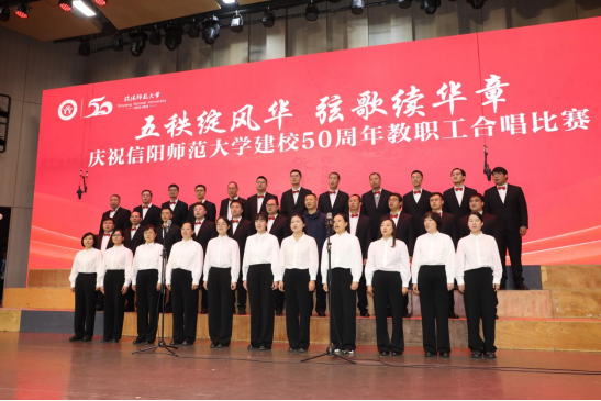 10 月 21 日,信陽師范大學建校 50 周年教職工合唱比賽在藝術樓大廳舉行。我院提前統(tǒng)籌部署,精心組織備賽,最終在比賽中表現(xiàn)優(yōu)異,總排名第八,榮獲二等獎。
