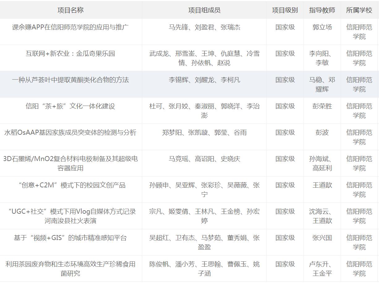 近日,國家教育部高等教育司下發(fā)《關(guān)于公布2019年國家級大學(xué)生創(chuàng)新創(chuàng)業(yè)訓(xùn)練計劃項目名單的通知》,公布了2019年獲批立項的國家級大學(xué)生創(chuàng)新創(chuàng)業(yè)訓(xùn)練計劃項目。我校新獲批立項10項,其中我院獲批創(chuàng)新訓(xùn)練計劃項目1項,創(chuàng)業(yè)訓(xùn)練項目1項.