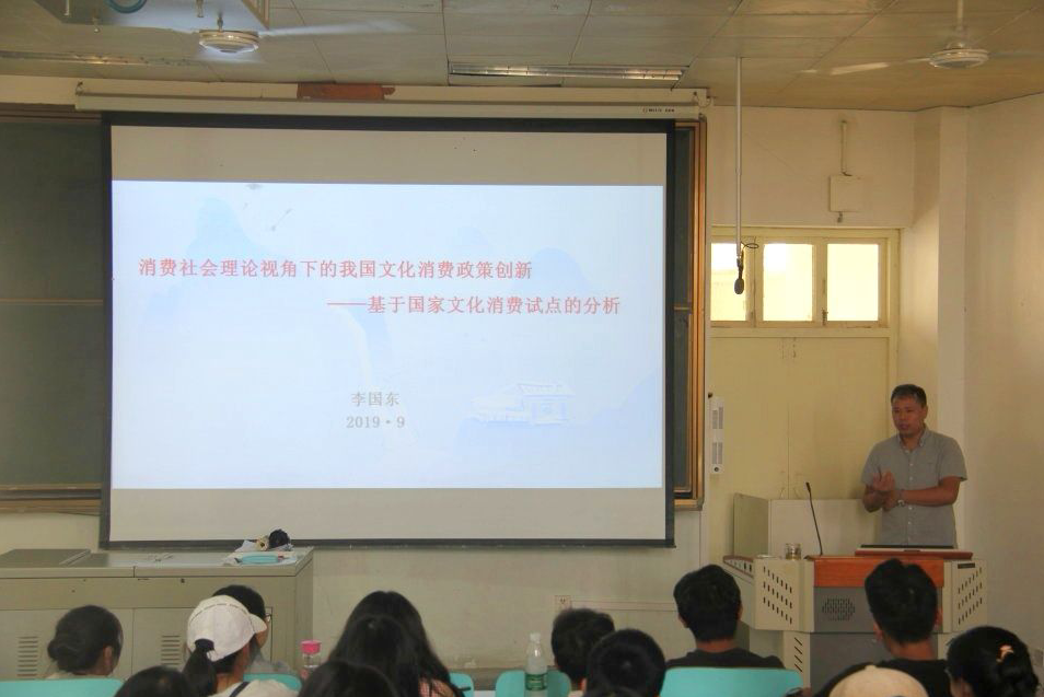 9月27日下午,我院在人文樓609教室開展了本年度第五場人文視野講座,講座主題為“消費(fèi)社會理論視角下的我國文化消費(fèi)政策創(chuàng)新---基于國家文化消費(fèi)試點(diǎn)的分析”,主講人為我院教師李國東博士。2017、2018級文化產(chǎn)業(yè)管理專業(yè)全體學(xué)生到場聽講。